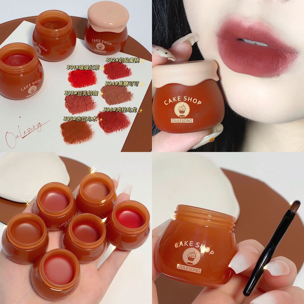 OULESONG Hũ Đựng Son Môi Mật Ong Cỡ Nhỏ Kèm Cọ Trang Điểm Tiện Dụng free ship